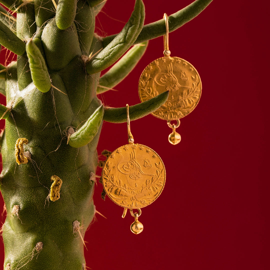 Osmanlı Devleti'nin son padişahlarından Sultan Mehmed Reşad (1909-1918) döneminde basılan ve günümüzde Türkiye Cumhuriyeti sınırları dahilinde hala aktif dolaşımda bulunan Reşad altınlarının çeyrekleriyle üretilen bu küpeler, topraklarımızın klasikleşen basit tasarımlarından olmaya devam ediyor. 22 ayar altından üretilen Reşadlar, 14 ayar tel ve altın toplarla küpe formuna dönüştürülmüş.